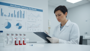 The oral glucose tolerance test (OGTT) checks how your body reacts to a sugary drink with 75 grams of glucose. Blood samples are taken at fasting and two hours later. A two-hour reading of 200 mg/dL or above confirms diabetes.