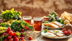 Eating smaller meals often helps avoid bloating and keeps your energy up. Focus on foods like fresh fruits, veggies, and whole grains. These foods help control blood sugar and boost your mood.